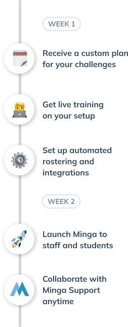 Easily sync your students, staff, bell schedules, and class data with MingaSync—automatically and hassle-free, so you never have to think about data entry again.
