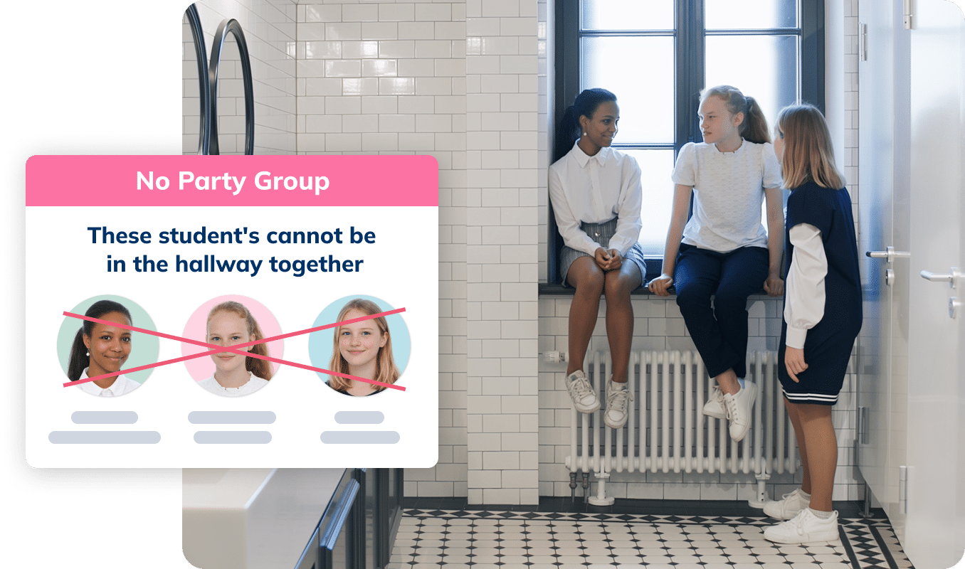 See which students might be using their hall passes for the wrong reasons, and block potential meetups before they happen.