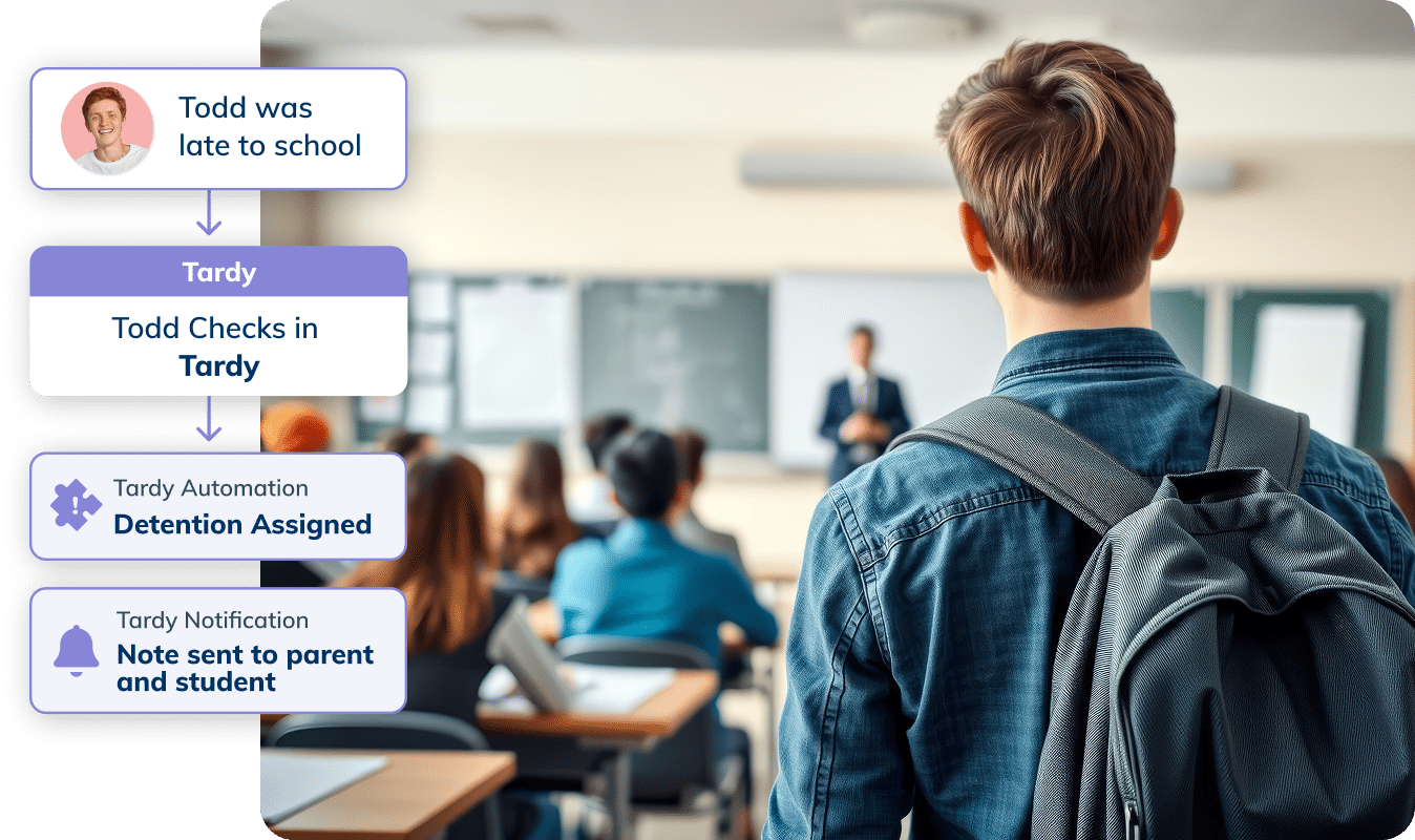 Automate your tardy process to eliminate late lines, keep parents informed, and identify at-risk patterns before they scale.